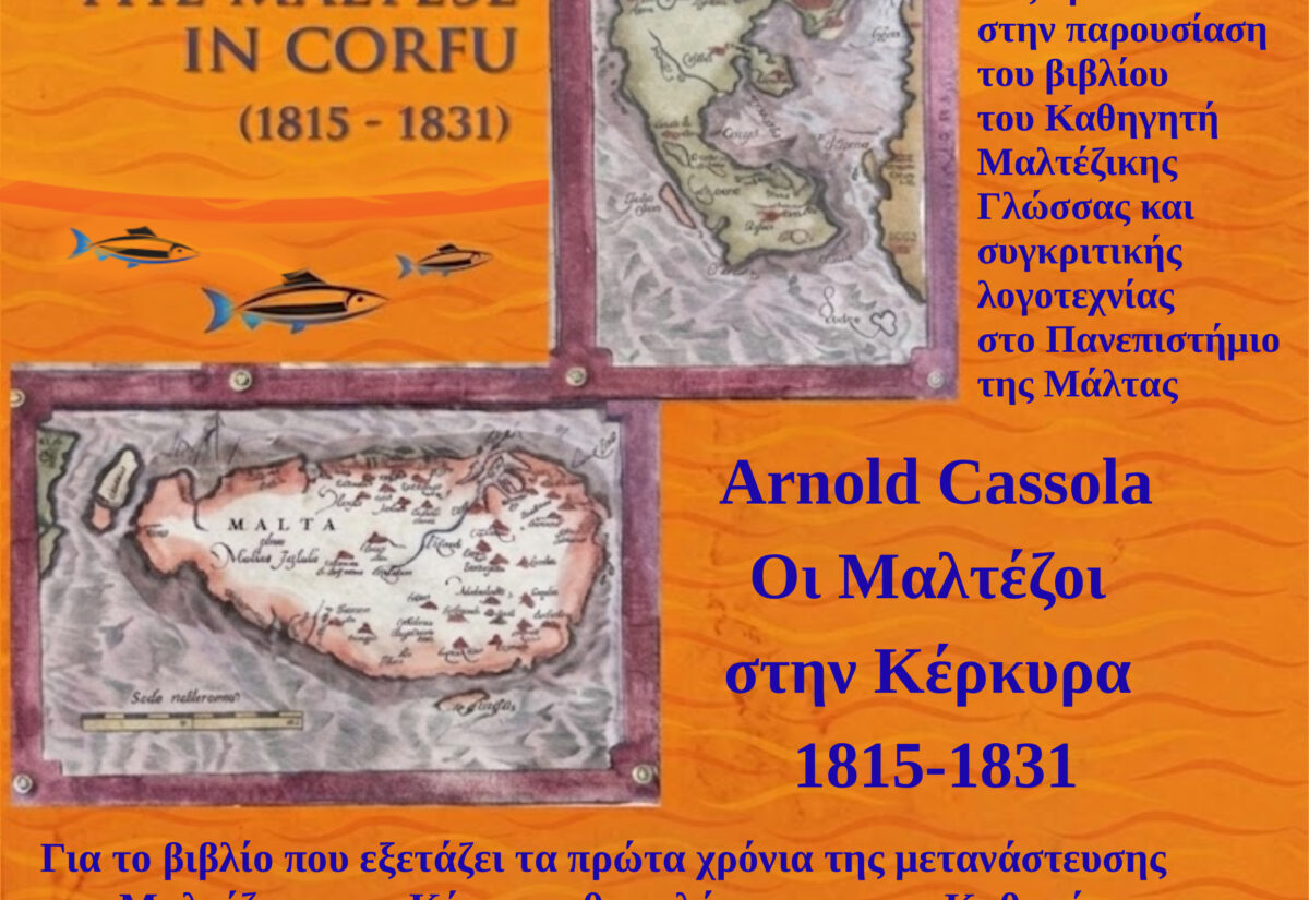 Η Δημόσια Κεντρική Ιστορική Βιβλιοθήκη Κέρκυρας και το Αρχείο της Καθολικής Αρχιεπισκοπής Κέρκυρας σας προσκαλούν στην παρουσίαση του βιβλίου του καθηγητή Μαλτέζικης Γλώσσας και Συγκριτικής Λογοτεχνίας στο Πανεπιστήμιο της Μάλτας, Arnold Cassola: